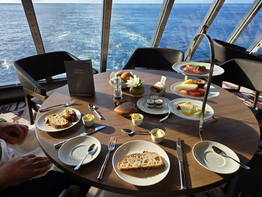 Der erste volle Tag war ein Seetag – perfekt, um runterzukommen. Für uns startete er mit einem ganz besonderen Highlight: einem exklusiven Frühstück im „Große Freiheit“-Bereich am Heck des Schiffes.